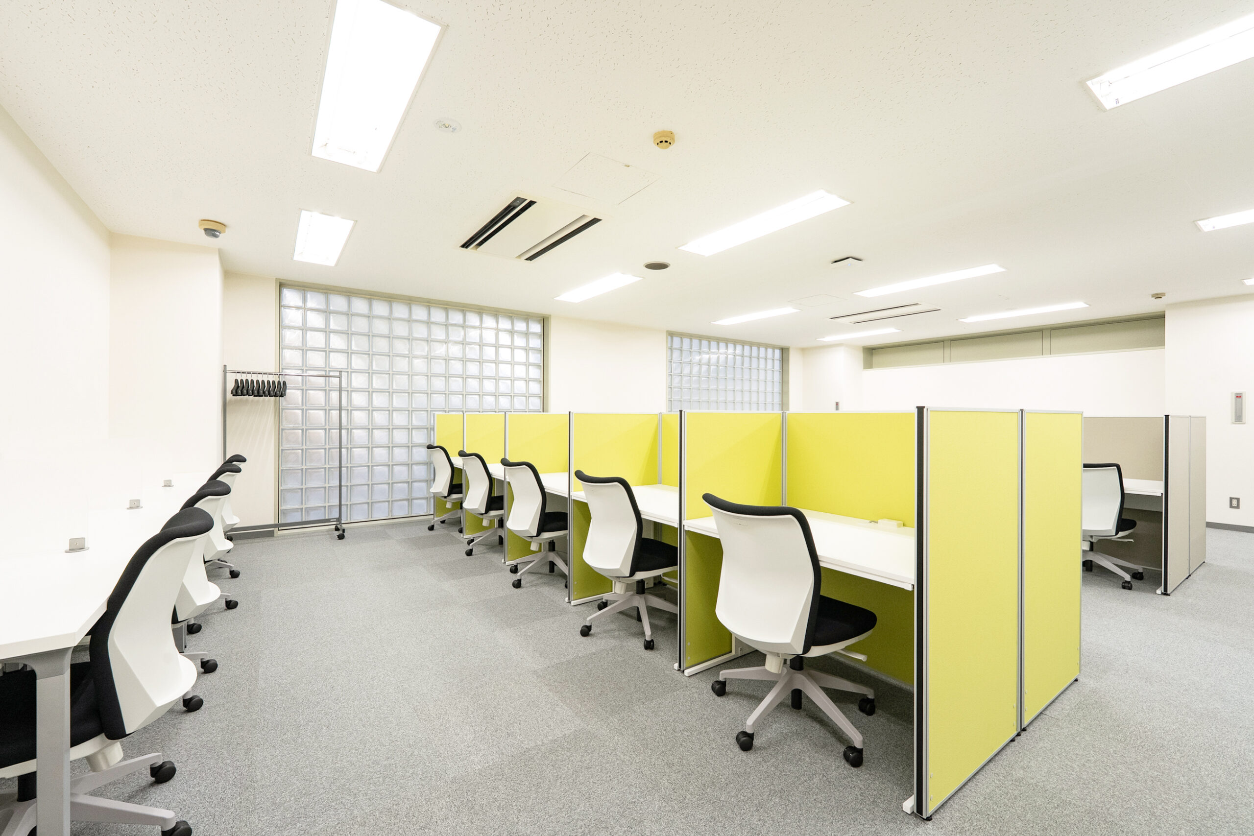 (施設の概要)仕事・オンライン会議ができるデスクと、外部の方を招いて打合せができる無料ラウンジがあります。