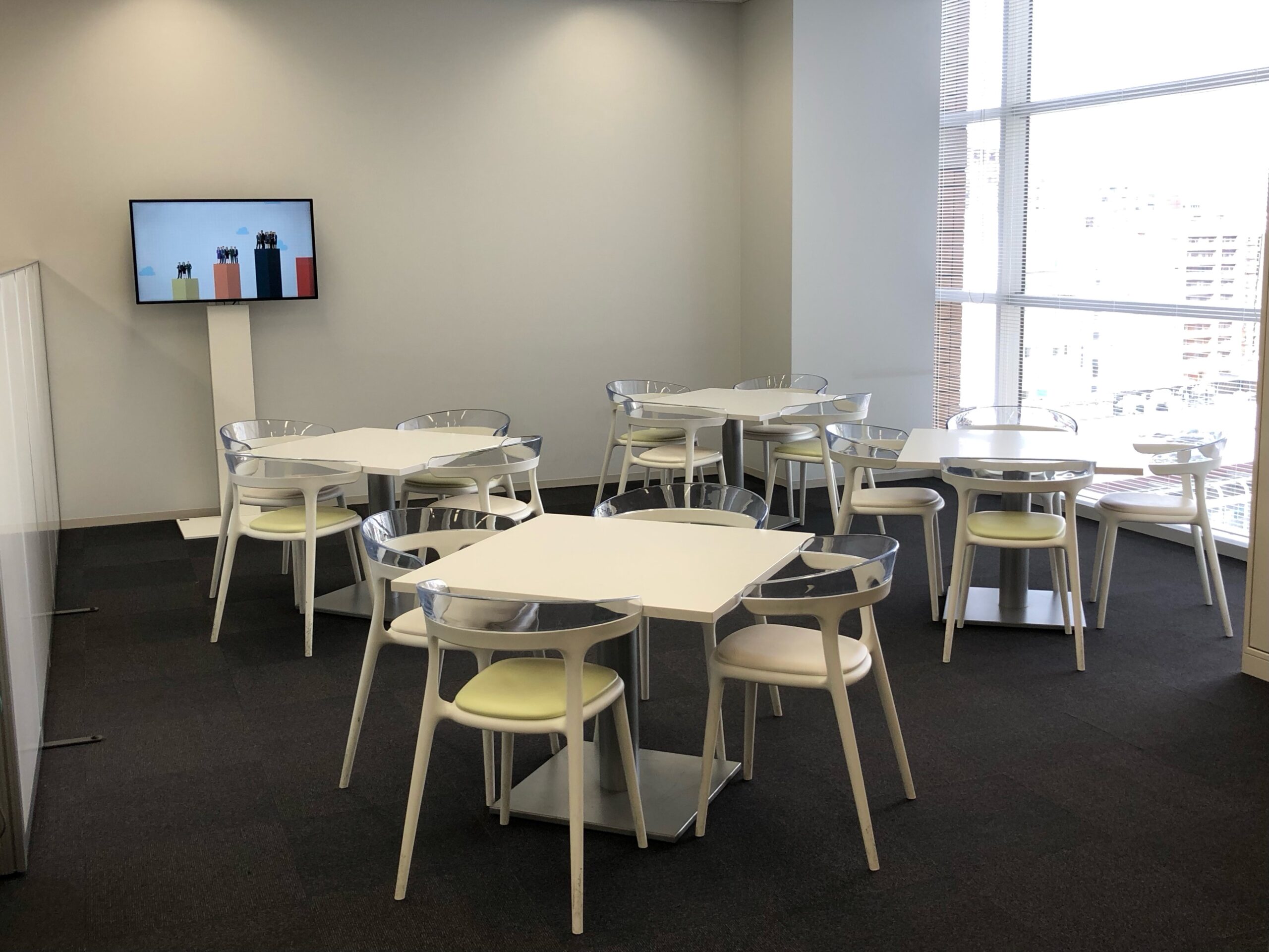 (施設の概要)仕事・オンライン会議ができるデスクと、外部の方を招いて打合せができる無料ラウンジがあります。